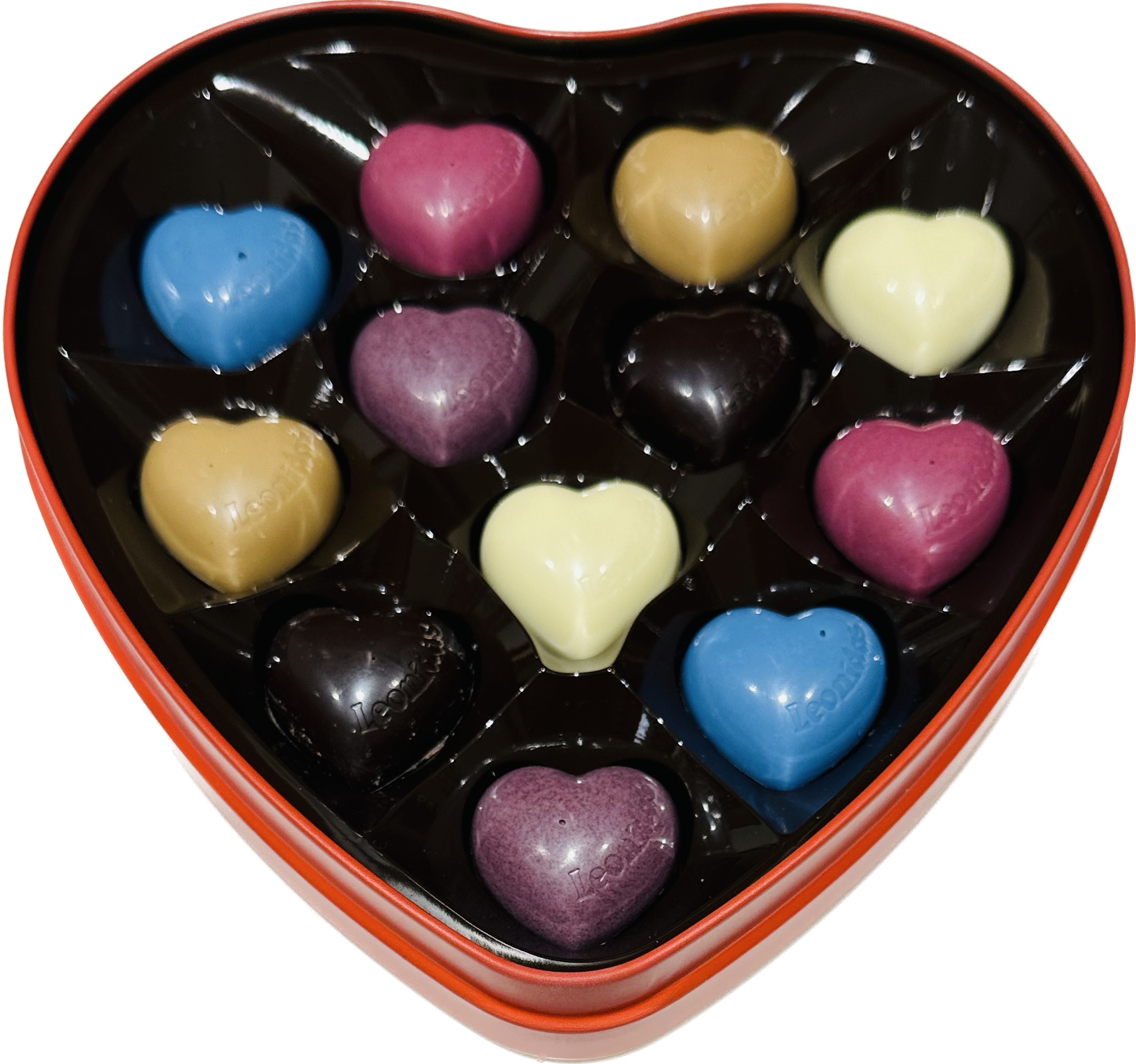 Optez pour ce coffret métal de 12 petits cœurs délicieux by Leonidas.